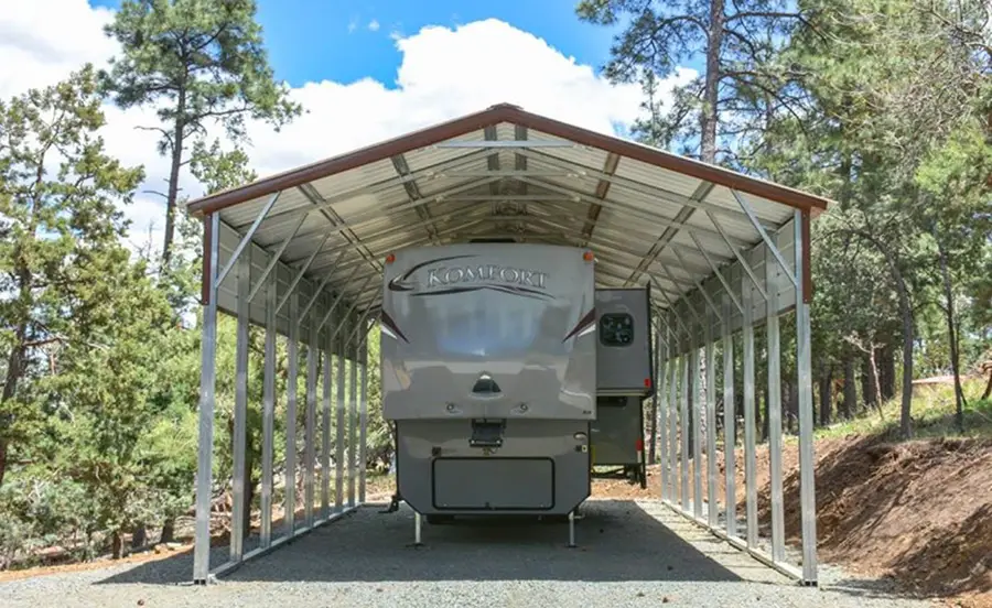 Shop durable metal RV carports—custom steel shelters built to protect motorhomes and campers from weather, UV damage, and debris year-round.